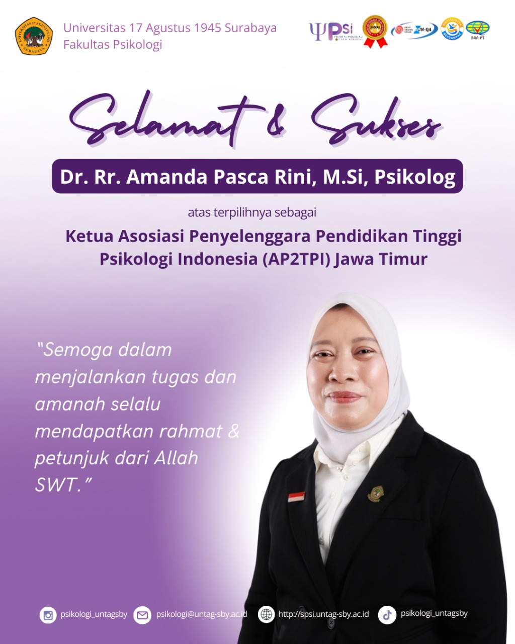 Selamat dan sukses atas pelantikan dekan fakultas psikologi universitas muhammadiyah malang periode 2025-2029