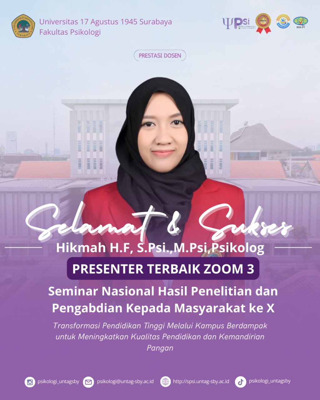 Dosen Fakultas Psikologi Untag Surabaya meraih prestasi presenter terbaik dalam seminar nasional