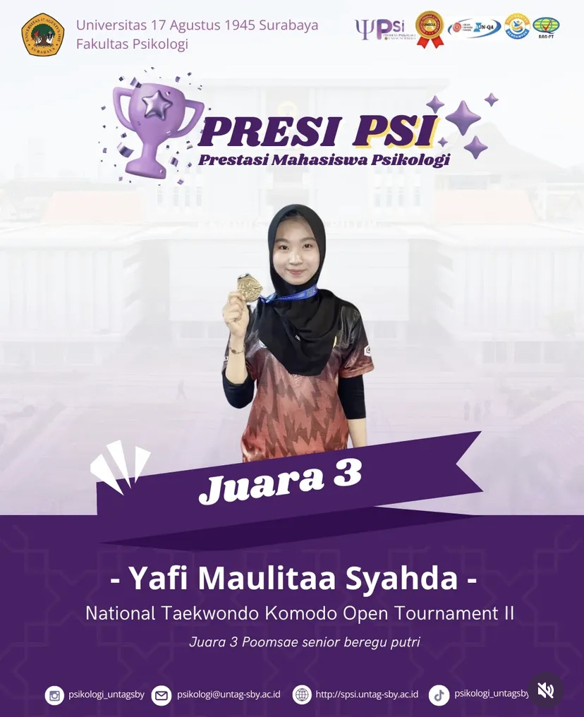 Prestasi Mahasiswa Fakultas Psikologi Untag Surabaya Juara 3 dalam National Taekwondo Komodo Open Tournament II